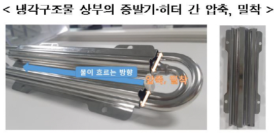 조사결과 문제가 된 정수기는 협소한 냉각구조물 틀에 증발기와 히터를 측면 접촉하도록 조립하는 구조로 인해, 조립과정에서 니켈도금이 벗겨지는 손상이 발생한 것이다.