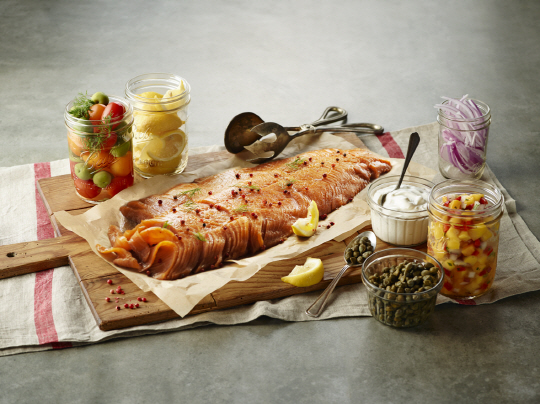 연어존에는 훈제연어 '살몬 파티플레이트', 애슐리 퀸즈만의 6가지의 DIY 토핑(토마토피클/망고살사/레드어니언/케이퍼/레몬/사워크림)과 '10cm 생연어 스시', '생연어 타다끼', '생연어 아보카도롤' 등 생연어 요리 3종 등을 가득 차려냈다. 즉석 요리 10cm 생연어 스시는 평일 저녁과 주말에 1시간 간격으로 종을 울려 한정 수량으로 제공하는 골든벨 메뉴이며, 하루종일 제공되는 훈제연어 '살몬 파티플레이트'는 취향에 따라 토마토피클, 망고살사 등의 토핑을 곁들이면 더욱 맛있게 즐길 수 있다.