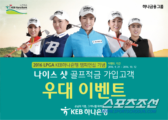 KEB하나은행은 21일 '2016 LPGA KEB하나은행 챔피언십' 개최를 기념해 오는 10월 12일까지 '나이스 샷 골프 적금'에 특별금리 제공 및 사은품 증정 이벤트를 실시한다고 밝혔다.