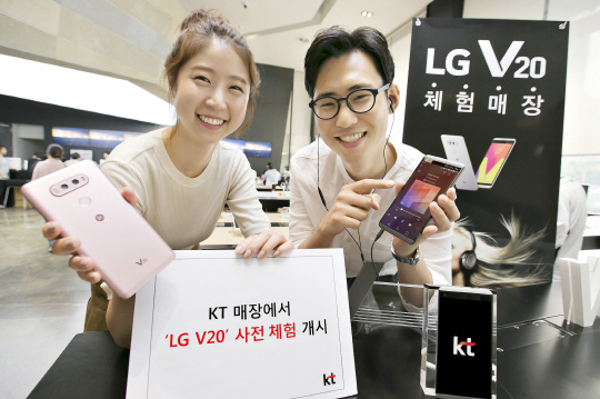 KT가 kt스퀘어를 포함한 전국 주요 KT매장에서 LG전자 플래그십 모델인 'LG V20' 사전 체험 행사를 진행키로했다.