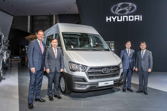 현대자동차가 21일(현지시각) 독일 니더작센(Niedersachsen)주(州) 하노버(Hannover)에서 열린 '2016 하노버 모터쇼(66th International Motor Show 2016 in Hannover)'에 콘셉트카 1대와 양산차 5대를 출품하면서 유럽 상용차 시장 공략에 박차를 가했다.