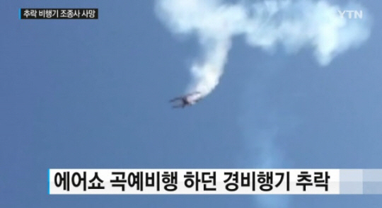 충남 태안에서 에어쇼 중이던 경비행기가 추락해 조종사 1명이 사망하는 사고가 발생했다.