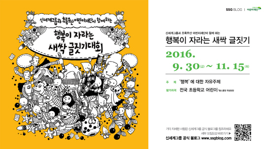 글짓기는 SSG블로그에서 온라인상으로 진행되며 홈스쿨링 학생을 포함한 전국 초등학생 어린이를 대상으로 '행복'에 대한 자유주제와 제목으로 시와 산문 부문의 공모를 통해 이뤄진다. 접수기간은 9월 30일부터 11월15일까지다. SSG블로그에서 다운로드 가능한 신청양식으로 이메일이나 우편접수도 가능하다.