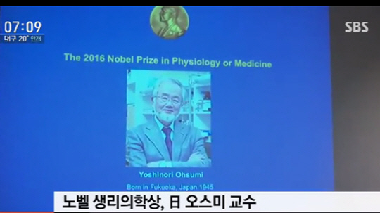올해 노벨생리의학상에 일본 학자 오스미 요시노리(大隅良典) 일본 도쿄공업대 명예교수가 선정됐다.
