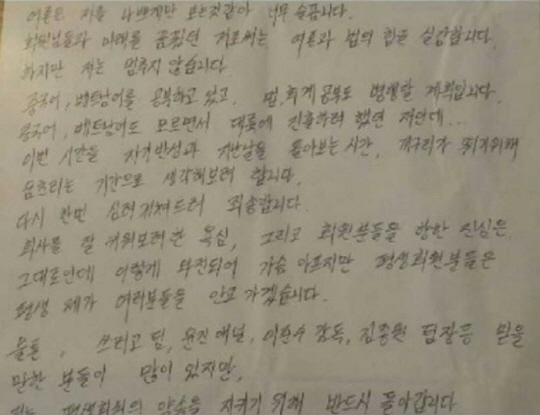 아래는 온라인카페에 공개된 이희진의 옥중편지 전문.