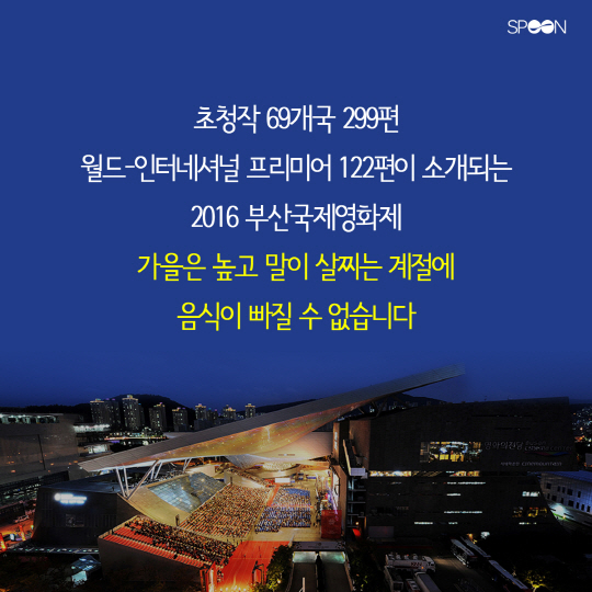 제21회 부산국제영화제가 지난 6일 개막했습니다. 영화제의 주무대인 해운대를 비롯해, BIFF거리가 있는 남포동 등 부산 곳곳엔 영화 만큼이나 식도락을 유혹하는 음식이 많습니다. 특히 영화제 기간엔 유명 맛집에서 배우와 감독들이 뒤풀이 하는 경우가 많아 우연히 스타를 만날 수 있는 행운까지 누릴 수 있답니다. 김수진 기자 vivid@sportschosun.com