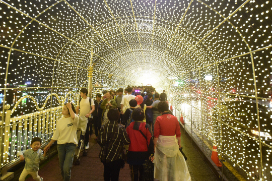 지난해 축제 유료화를 시행하면서 제기된 논란거리가 있었다. 축제장 안전펜스(가림막) 문제다. 시는 이를 두고 안전펜스라고 주장했지만 시민들은 돈을 내지 않으면 축제장 구경을 막는 '가림막'이라고 맞섰다. 이에 주최 측에서는 올해앵두 등을 활용한 '하늘길' '가람길'로 명명한 등(燈) 터널을 설치해 이를 해결방안으로 제시했다. 테마길을 걸으면서 유등을 관람할 수 있도록 해 지역민들에게 호평을 받고 있다는 것이다. 특히 진주교와 천수교에 설치된 앵두 등은 진주남강유등축제의 행사장내 관람객 분산효과를 가져왔고, 20~30대 젊은 층의 적극적인 호응으로 오히려 진주남강유등축제의 새로운 명소로 등장하고 있다는 설명이다.