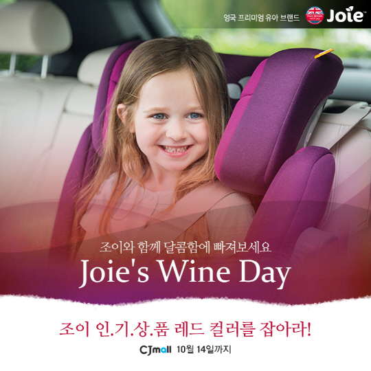 글로벌 유아브랜드 '조이'가 인기 카시트와 유모차 중 레드 컬러 상품들을 CJ몰 단독으로 최대 50%까지 할인 판매하는 '조이 와인데이 특별전'을 실시한다.