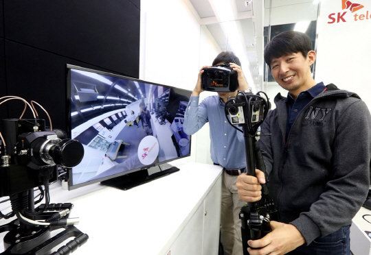 SK텔레콤이 풀HD의 4배 수준의 화소를 갖춘 4K VR(Virtual Reality) 생중계가 가능한 기술을 개발하고 분당 종합기술원에서 시연했다고 16일 밝혔다.