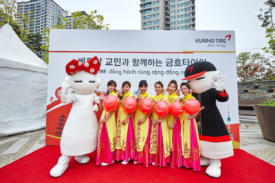 금호타이어는 베트남 빈증성에 베트남 최초의 승용차용 타이어 생산공장(2008년 완공)과 타이어의 원재료인 천연고무 가공 공장(2007년 완공)을 운영하며 베트남과의 인연을 시작했다. 현재 베트남에서 연간 417만개 규모의 타이어 생산능력을 갖추고 있으며, 현지에서 빈곤가정 및 시각장애인 시설지원 등 사회공헌 활동도 활발히 펼치고 있다.