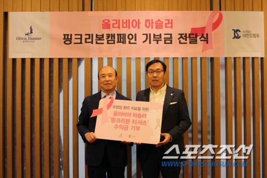 한편, 올리비아하슬러는 지난 10월 17일 패션그룹형지 서울 역삼동 본사에서 오화진 올리비아하슬러 본부장 및 이기철 대한암협회 사무총장이 참석한 가운데 올해 5월 출시했던 2차 에디션 '핑크리본 티셔츠'의 기금 전달식을 진행했다. '핑크리본 티셔츠' 3천장은 올 여름 모두 완판되었다.