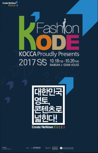 [스포츠조선 엔터스타일팀 이한나 기자] 문화체육관광부와 한국콘텐츠진흥원은 한국디자이너연합회와 함께 오는 18~20일 서울 중구 남산 제이그랜하우스에서 '패션코드(Fashion KODE) 2017 S/S'를 개최한다.