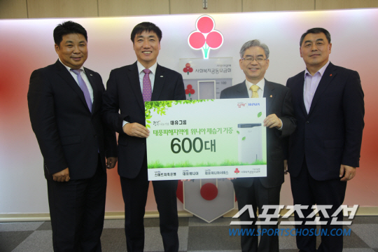 대유위니아는 지난 17일 스마트저축은행과 함께 태풍 '차바' 피해지역 주민들을 위해 제습기 600대를 사회복지공동모금회에 기부했다고 18일 밝혔다.
