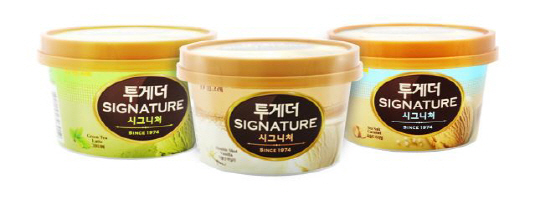 빙그레는 투게더 시그니처에 국내산 3배 농축우유를 사용하여 더욱 진하고 풍부한 맛을 구현했으며, 다른 아이스크림과 달리 쉽게 녹지 않는다고 전했다. 투게더 시그니처는 더블샷 바닐라와 씨솔트카라멜, 그린티라떼 등 3종으로 출시됐다. (2000원대/110ml)