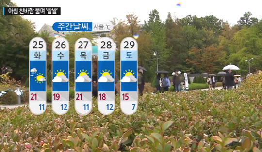특히 내륙은 낮과 밤의 기온 차가 커 건강관리에 주의해야 한다고 기상청은 당부했다.