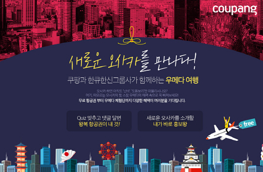 이커머스기업 쿠팡이 일본의 철도·쇼핑 기업 한큐한신그룹사와 함께 우메다 무료 여행 지원 이벤트를 진행한다.