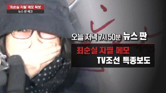 [스포츠조선 이유나 기자] TV조선이 오늘 저녁 7시 50분 새로 출발하는 <TV조선 뉴스 판>에서 단독으로 확보한 최순실 씨의 자필 회의 메모를 특종 보도한다.