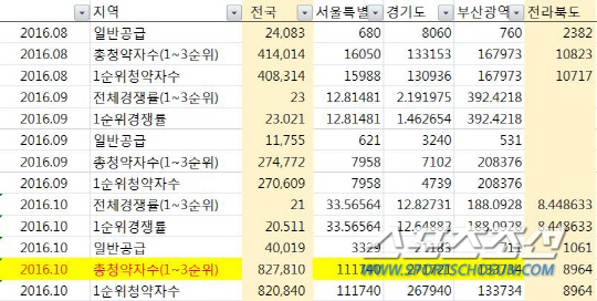 오는 3일 정부가 주택시장 과열을 진정시키기 위한 새로운 부동산대책을 발표할 예정인 가운데 지난달 아파트 청약자가 2007년 이후 최대 규모를 기록한 것으로 나타났다. 10월 전국 아파트 청약자 수는 82만7810명에 달하며 이 가운데 82만840명이 1순위 통장을 사용했다. 청약자 대부분이 1순위자인 셈이다. 이에 따라 1순위 마감단지도 연중 최대치인 평균 85%를 기록했다.