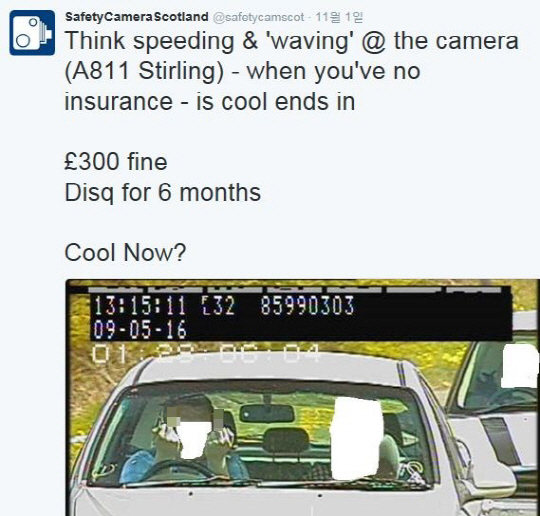 운전중 과속 카메라를 향해 '손가락 욕설'을 한 운전자에게 6개월 운전정지와 함께 300파운드(약 42만원) 과태료가 부과됐다.
