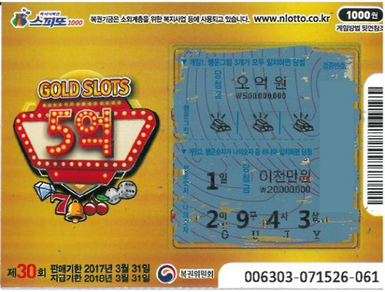 스피또1000의 당첨금은 5억원. 그는 당첨금 사용계획 질문에 "당첨금 중 일부는 대출금 상환 후 집을 구입하는데 쓸 예정"이라고 전했다. 스피또1000 30회차의 1등 당첨자는 3명 남았다.