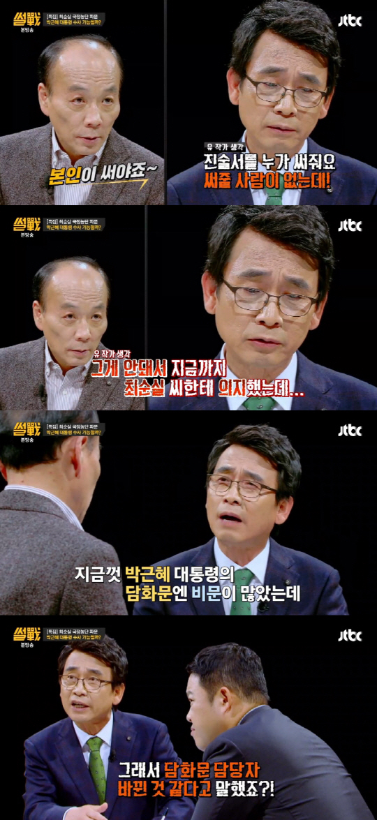 담화문 작성 담당자가 바뀌었다고 확언했다. "안된 말이지만 지금껏 박근혜 대통령의 담화문에는 비문이 많았다. 최근 사과문 말고 그 전 담화문 때부터 비문이 없어졌다. 그래서 내가 담화문 담당자가 바뀐 거 같다고 말하지 않았냐"고 덧붙였다.