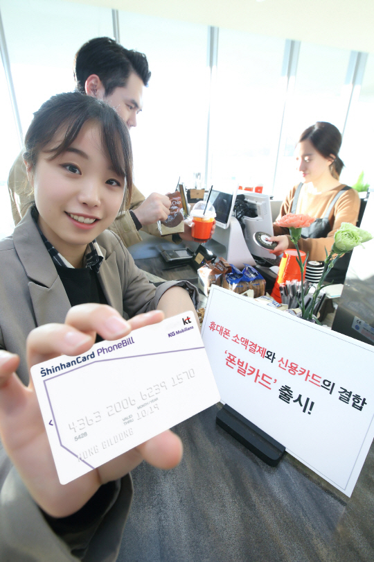 KT가 휴대폰 소액결제 한도 내에서 기존의 온라인 결제뿐 아니라 오프라인결제까지 이용할 수 있는 플라스틱 형태의 폰빌카드를 출시했다고 6일 밝혔다.