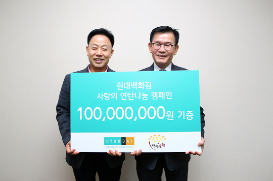 현대백화점에 따르면 이날 연탄은행에 연탄 약 17만5000장을 구매할 수 있는 연탄나눔기금 1억원을 전달했다.