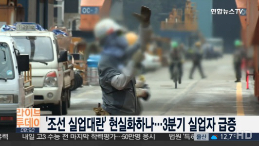 구조조정에 들어간 조선업종의 실업대란이 현실화하면서 취업자 증가폭이 6년 만에 최저 수준으로 떨어졌다.