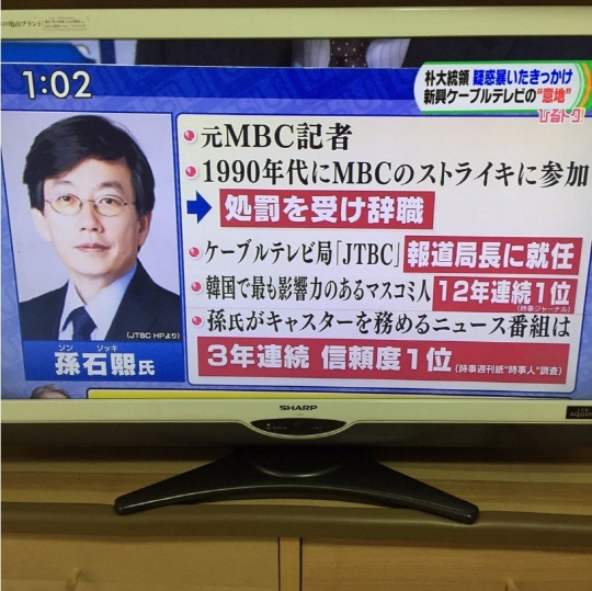 손석희 JTBC 보도국 사장이 일본 방송에 등장해 눈길을 끌었다.