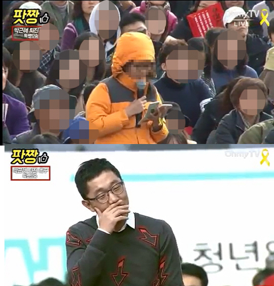 이어 박근혜 대통령의 2차 대국민담화 내용을 성대모사로 패러디하며 "제가 여기 나와서 이런 이야기 하려고 초등학교에서 말하기를 배웠나 자괴감이 들고 괴로워서 밤이 안온다"고 말했다.