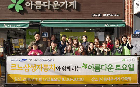르노삼성자동차는 지난 12일 사회적기업 아름다운가게와 함께 임직원들이 직접 참여하여 나눔을 실천하는 사회 공헌 프로그램 '아름다운 토요일'을 진행했다고 밝혔다.