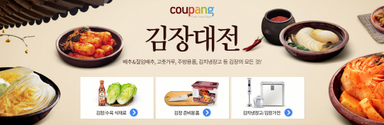 이커머스기업 쿠팡이 본격적인 김장철을 맞아 식재료부터 가전까지 총 200여 종의 김장 용품을 12월 31일까지 선보인다.