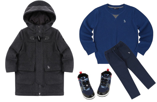 한층 더 의젓해진 남자 아이들 에게는 담백한 컬러감이 돋보이는 캐시미어 니트 풀오버와 더플 코트로 겨울 스타일링을 완성해 주자. 더플 코트와 니트는 활동성이 좋은 남자아이들이 불편함을 느끼지 못할 정도로 가벼운 캐시미어 소재로 선택해 볼 것. 여기에 기모 팬츠와 캐주얼한 하이탑을 더해 주면 칼바람에도 따뜻하고 편안한 키즈룩이 완성 된다.