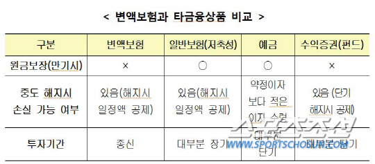 금융감독원은 15일 '변액보험 가입자가 알아둘 필수정보'를 통해 김씨처럼 원금을 손해 보고 싶지 않거나 10년 이상 투자할 여력이 없다면 변액보험 상품에 가입하지 않는 것이 좋다고 밝혔다.