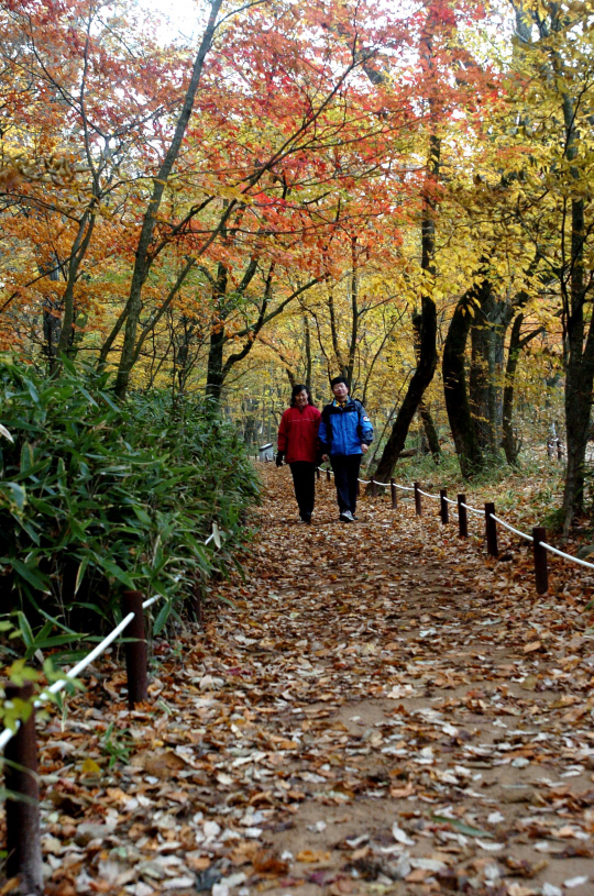 가을과 겨울이 만나는 11월의 중반, 수목은 노랗고 발간 오색 자태를 훌훌 털어 내느라 분주하다. 절정의 자태를 넘어 겨울로 향하는 즈음, 늦가을의 정취를 맛보기로는 이맘때가 제격이다. 숲길에 접어들면 그야말로 오감으로 계절의 변이를 실감할 수가 있다. 시각은 물론 청각 촉각 등 온 몸이 흡족한 숲길 기행을 담보해준다. 간간히 느껴지는 마른 낙엽 냄새는 또 어떠한가? 굳은 마음에 감성의 훈풍을 불어 넣는 계절의 진한 여운에 다름없다. 만추의 서정을 듬뿍 맛볼 수 있는 운치 있는 숲길을 소개한다.