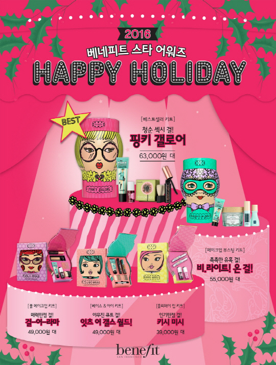 베네피트가 선보이는 홀리데이 컬렉션은 한 해 동안 사랑받은 제품으로 구성된 핑키 갤로어, 걸 어 라마, 잇츠 어 갤스 월드! 3종 키트다. 베네피트 특유의 대담하면서도 여성스러운 브랜드 DNA를 담은 틴케이스 패키지로 소장 가치를 높인 것이 특징이다.