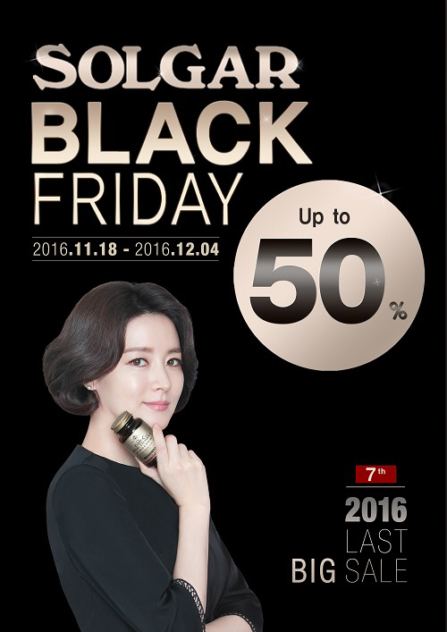 올해로 7회째를 맞는 '솔가 블랙프라이데이'는 롯데·현대·신세계 백화점에 입점 된 솔가 매장을 방문한 모든 고객들에게 전 제품 최대 50% 할인 혜택은 물론 100% 당첨 쿠폰 등 다양한 이벤트를 진행한다. 또한, 솔가 직영몰에서도 역시 최대 50%까지 할인 혜택을 제공하고 올리브영 등의 드럭스토어에서도 특별 할인 가격에 솔가 제품을 만나볼 수 있다. 특히, 이번 제7회 솔가 블랙프라이데이는 이영애 비타민으로 잘 알려진 '솔가 에스터C'와 프로바이오틱스, 루테인 등의 주요 제품을 백화점·온라인몰 모두 회원 등급에 관계없이 최대 50% 할인된 가격에 판매한다.