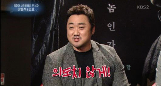 19일 방송된 KBS2 '연예가중계'에서는 영화 '두 남자'에 출연하는 마동석과 민호의 인터뷰가 공개됐다.