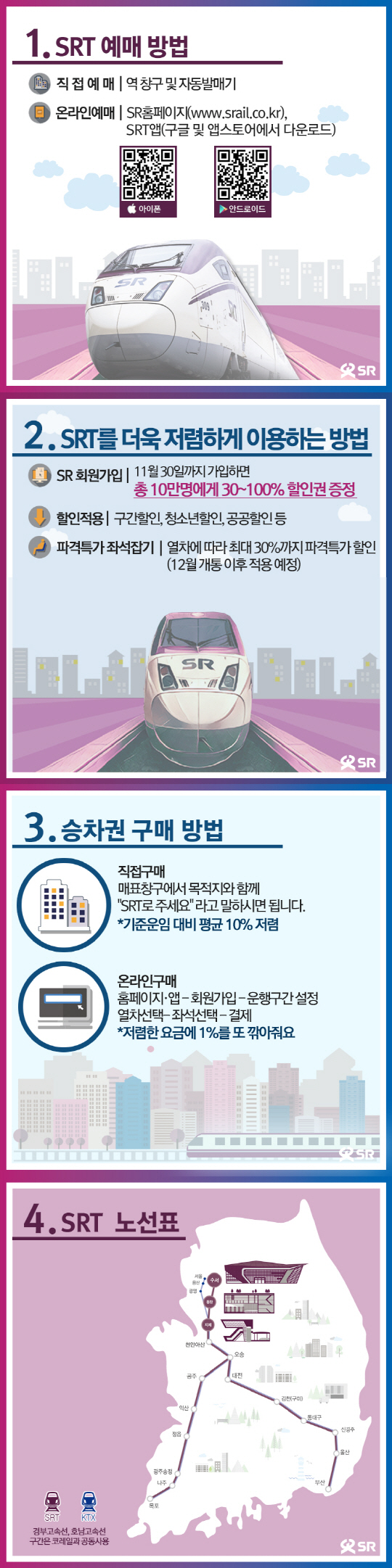 한편, SR은 오는 12월 9일 개통을 앞두고 '얼리버드 회원가입 이벤트'를 진행 중이다. 이달 30일까지 SR회원으로 가입하면 추첨을 통해 총 10만명에게 30~100% 할인권을 지급한다.