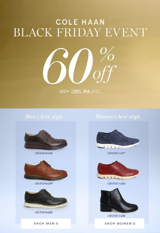 이번 프로모션에선 신제품인 투포인트제로그랜드와 남/녀 베스트 셀링 아이템인 오리지널 그랜드, 페니로퍼, 앵클 부츠 등 다양한 아이템을 최대 60%까지 할인 된 가격으로 만나볼 수 있다.