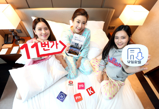 '당일 할인 호텔' 서비스는 호텔 공실을 원하지 않는 업주와 저렴한 가격을 기대하는 소비자를 동시에 만족시키는 대표적인 타임커머스(Time Commerce) 서비스로 11번가는 오늘부터 모바일 플랫폼에 기반한 당일 호텔 예약 서비스 대표 업체 '호텔나우', '코리아호텔닷컴', '핀스팟' 등 3개사와 서비스를 시작한다. 12월은 '호텔조인', 내년 1월은 '야놀자'까지 총 5개사가 연달아 입점 예정이다.