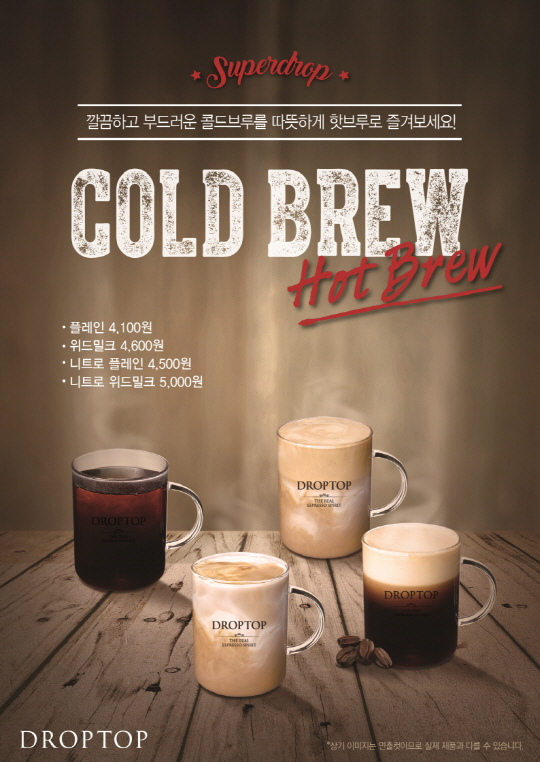 카페 드롭탑이 지난 21일 전국 220여 개 매장에서 커피전문점 최초로 '핫 콜드브루 4종'을 출시했다고 23일 밝혔다.