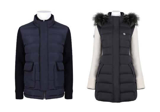 여성용 점퍼는 남성용과 달리 몸통 부분과 팔 부분의 색상이 다른 것이 특징이다. 팔 부분은 베이지색을 사용해 깔끔한 느낌을 주었다. 허벅지를 덮는 긴 기장과 잘록한 허리 라인이 체형을 예쁘게 잡아주며 모자에 부드러운 퍼를 장식해 여성스러운 매력을 살렸다. 여성용 '소매 니트 다운 점퍼'는 차콜 그레이와 네이비 두 가지 색상으로 출시됐다.전상희 기자 nowater@sportschosun.com