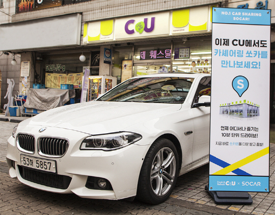 CU(씨유)는 CU화곡정원점(강서구 화곡동)에서 수입 중형차(BMW 520d)의 카셰어링 서비스를 제공하고 있다. BMW 520d는 올 상반기 국내 수입차 전체 모델 중 판매량 1위를 기록할 정도로 가장 인기가 높은 차종이다.