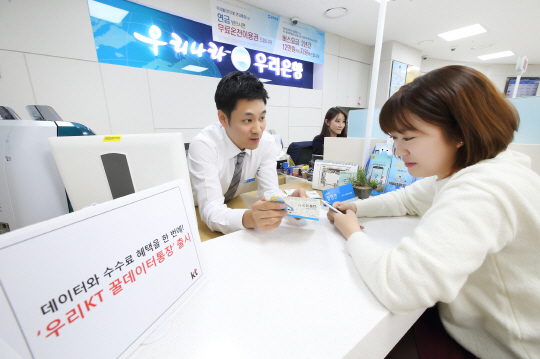 KT가 우리은행과의 제휴를 통해 LTE 데이터와 은행수수료면제 혜택을 동시에 제공하는 '우리KT 꿀데이터통장'을 출시한다.
