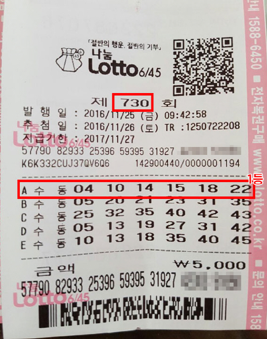 또한 이번 730회 수동 1등 당첨자 중 한명은 온라인 로또명당으로 소문난 한 커뮤니티를 통해 자신의 당첨 사실을 전해 네티즌 사이에서 화제다.