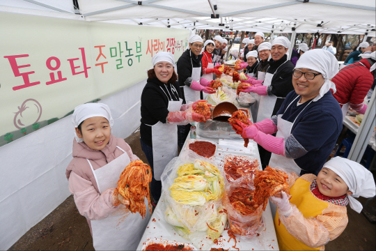 한국토요타자동차는 지난 27일 경기도 고양 산울안민속농원에서 토요타 고객들로 구성된 약 100명의 '2016 토요타 주말농부'들과 함께 주말농사의 결실을 맺는 '사랑의 김장 나누기' 행사를 열었다고 밝혔다.