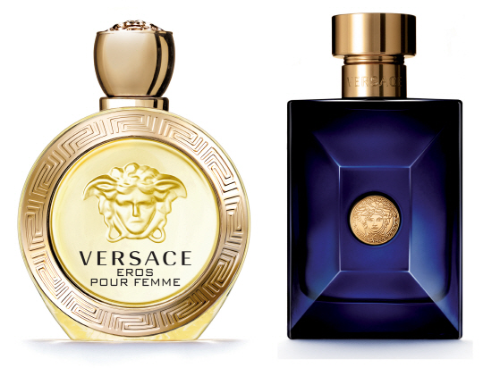 베르사체 에로스 뿌르팜므는 고급스러운 보틀에 센슈얼한 향이 매력적인 향수다. 프레쉬한 탑노트와 프리지아·목련의 플로럴 향으로 여성스러운 분위기를 자아낸다. 현대적이면서도 머스크 향의 따뜻함이 어우러져 겨울에 사용하기 좋다. 베르사체 뿌르옴므 딜런블루는 강한 남성미와 카리스마를 표현하는 향수다. 베르사체에서 오랜만에 출시한 남성 향수로 베르가못·그레이프 프룻의 상큼한 향에 아쿠아틱 노트의 상쾌한 바다향이 믹스되어 신선함을 전달한다. 베르사체 향수는 국내 면세점, 백화점 및 아리따움 등에 입점되어 판매되고 있다.