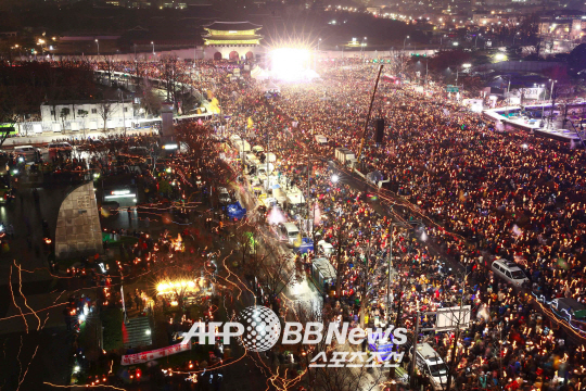 퇴진행동은 이날 오후 7시 집이나 상점, 사무실에 있는 시민들은 1분간 소등하고, 운전자들은 1분간 경적을 울리는 방식으로 집회 동참을 요청했다. <스포츠조선닷컴>