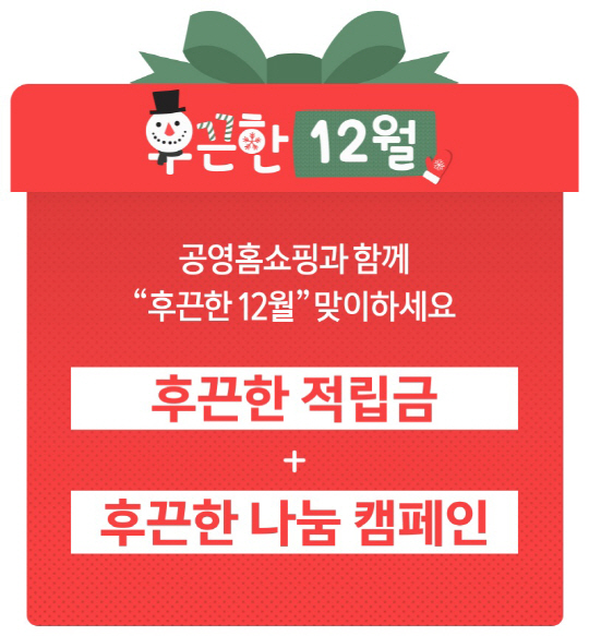 공영홈쇼핑이 연말 고객 감사 의미로 후끈한 나눔, 후끈한 적립금, 후끈한 주말쿠폰 등 '후끈한 12월' 이벤트를 마련했다.